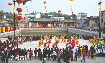 沙湾粤韵(沙湾古镇):沙湾古镇始建于宋代,原名本善乡,因地处古海湾半月形的沙滩之畔,故名“沙湾”。自古地灵人杰的沙湾,古镇悠悠,文风鼎盛,艺术纷呈。这里是广东音乐的发祥地,“何氏三杰”名扬海外,《赛龙夺锦》、《雨打芭蕉》等经典天籁远播,无负其“中国非物质文化遗产”之名号;这里的飘色流动着古镇的人文神韵,拥揽了中国民间文艺“山花奖”;这里的龙狮飞舞着华夏文明的风采而勇夺“群星奖”,更被命名为“中国龙狮之乡”;这里的兰花绽放于岭南文化的丰厚积淀,植根在“中国兰花名镇”的沃壤;这里还完整保存着南粤古村落传统的梳式布局,是岭南民间建筑艺术的博物馆,先后荣获“中国历史文化名镇”、“国家文明示范镇”、“国家卫生镇”、“中国文化旅游名镇”等称号。