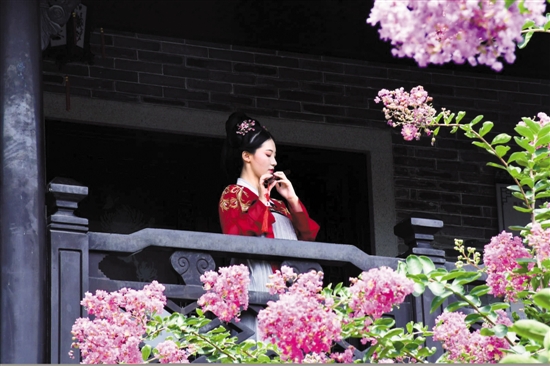 现场舞蹈《水墨岭南》、古筝合奏《采薇》、诵读节目《和白居易一起穿越四季》、旗袍秀等与紫薇相辉映。著名中国山水画画家胡明德教授向余荫山房赠画。