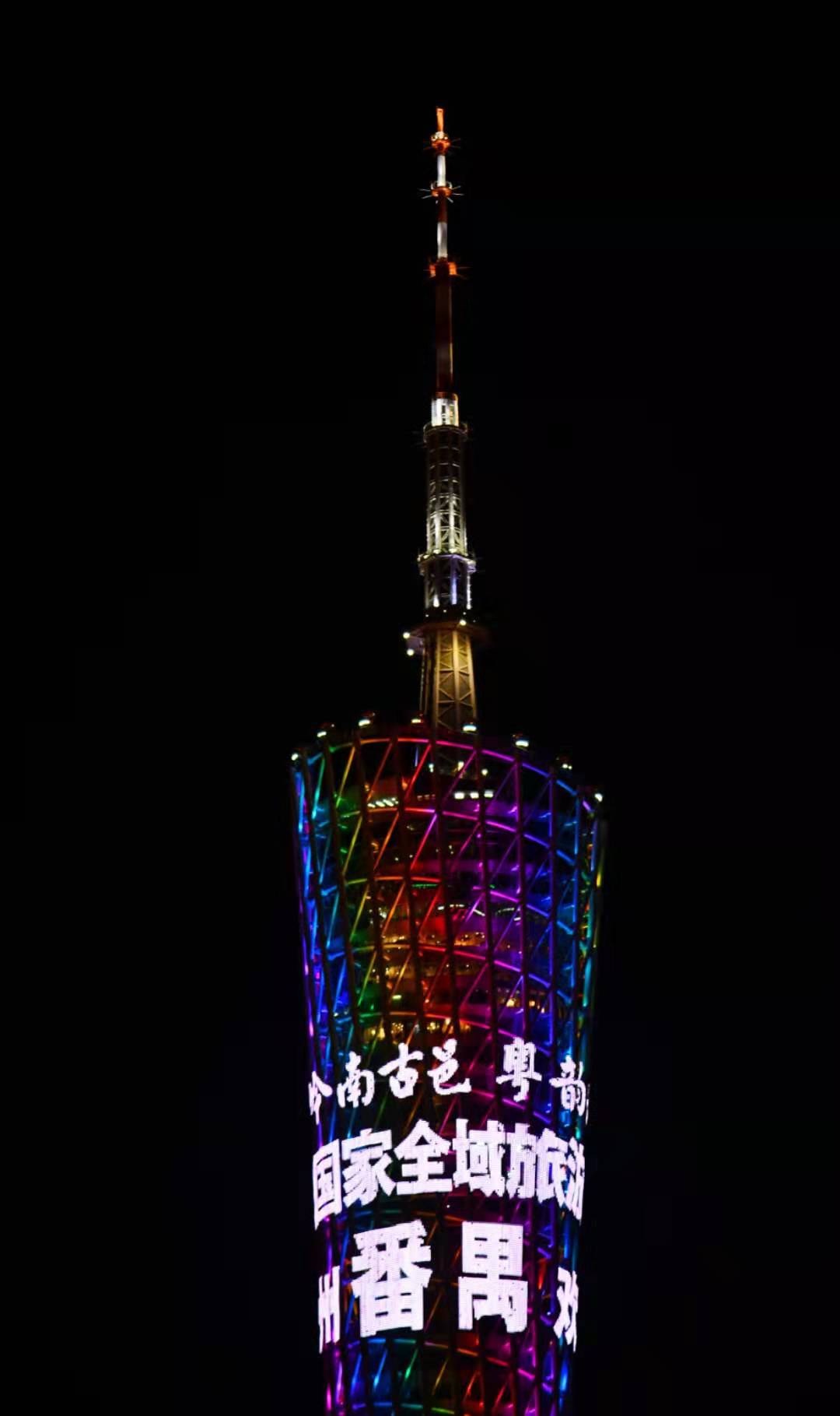 9月26日19:53时,广州地标广州塔塔身发布“岭南古邑 粤韵番禺、首批国家全域旅游示范区、广州番禺欢迎您”宣传。震撼大气的宣传画面,在珠江两岸璀璨夜景灯光的衬托下,让人更加感受到广州番禺的独特魅力。