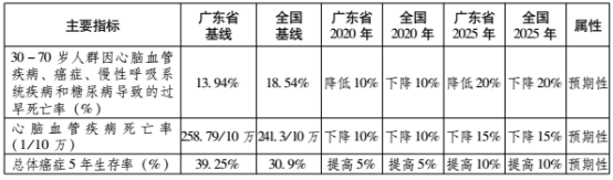到2020年,慢性病防控环境显著改善,降低因慢性病导致的过早死亡率,力争30-70岁人群因心脑血管疾病、癌症、慢性呼吸系统疾病和糖尿病导致的过早死亡率较2015年降低10%。到2025年,慢性病危险因素得到有效控制,实现全人群全生命周期健康管理,力争30-70岁人群因心脑血管疾病、癌症、慢性呼吸系统疾病和糖尿病导致的过早死亡率较2015年降低20%。逐步提高居民健康期望寿命,有效减轻慢性病疾病负担。