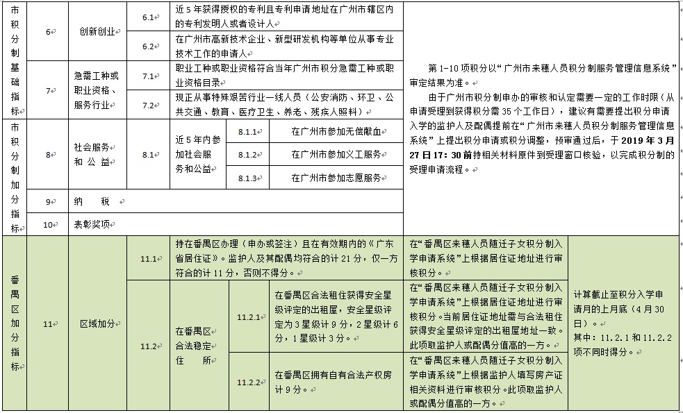 四、根据《广州市人民政府关于印发广州市来穗人员积分制服务管理规定(试行)的通知》及其实施细则要求,各区在广州市来穗人员积分制指标体系之外,补充不超过30分的加分指标。本积分项目第1项至第10项需监护人及其配偶提前在“广州市来穗人员积分制服务管理信息系统 ”上提出积分申请。第11项为彩票平台推荐 区域加分项,需监护人在“彩票平台推荐 来穗人员随迁子女积分制入学申请系统”上提出加分申请。
