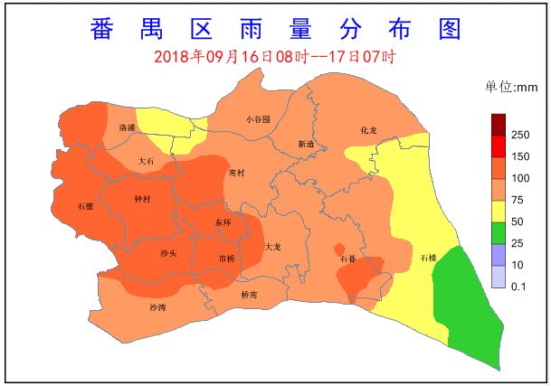 “山竹”的降雨主要在16日白天,我区普遍录到暴雨至大暴雨。最大时雨量出现在沙头街番禺国家气象观测站,达到31.9毫米。桥南、沙头、市桥、东环、钟村、大石、石壁、洛浦及南村等9个镇街的12个气象观测站录到大暴雨,最大累积降雨量出现在钟村街,达到130.9毫米。