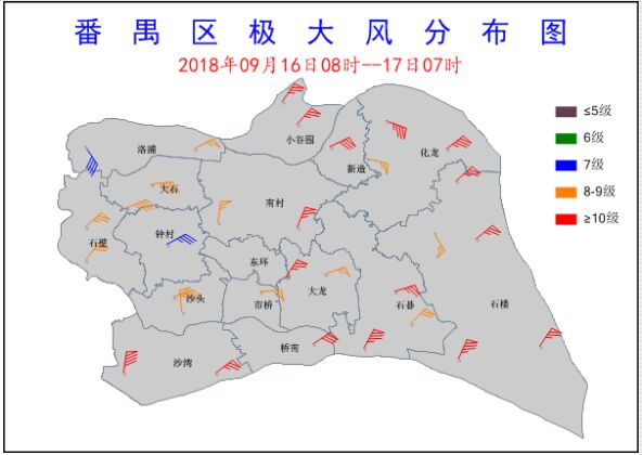 “山竹”对我区的风雨影响主要在16日白天,桥南街最早出现8级阵风(出现时间06时58分),石碁镇最早出现10级阵风(出现时间09时55分),石楼镇最早出现11级阵风(出现时间13时46分)。至今早7点,我区共有石楼、化龙和沙湾3个镇的5个气象观测站录到11级阵风,最大阵风出现在沙湾镇紫坭村委气象观测站,达到31.0米/秒(11级,出现时间14时50分),这是最近15年来我区受台风影响录得的最大风力。