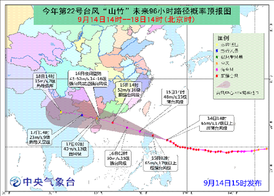 “山竹”将于15日中午前后进入南海16-17日将严重影响我区