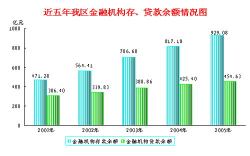 金融机构存款快速增长。年末金融机构人民币存款余额929.08亿元,比年初增长13.7%;金融机构人民币贷款余额454.63亿元,比年初增长6.9%。