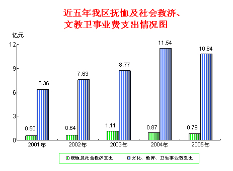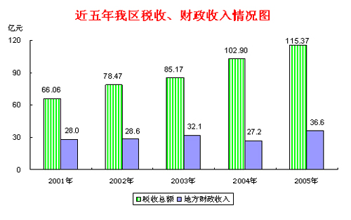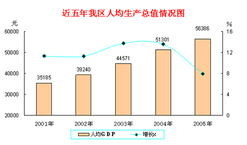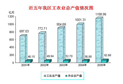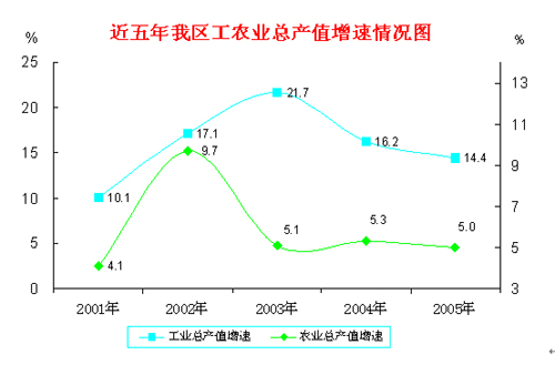 2005年,在区委、区政府的正确领导下,全区人民以邓小平理论和“三个代表”重要思想为指导,认真贯彻和落实党的十六大和十六届三中、四中和五中全会精神,全面落实科学发展观,坚决执行中央宏观调控政策,国民经济保持较快速发展势头,各项社会事业蓬勃发展,人民生活水平继续提高。