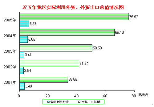 外贸进出口增长较快。2005年,彩票平台推荐 海关进出口总值达135.98亿美元,增长13.8%。其中:进口总值60.06亿美元,增长12.7%;出口总值75.92亿美元,增长14.8%。一般贸易出口快速增长,出口结构优化。全年一般贸易出口额11.53亿美元,增长33.8%,占全区出口比重达15.2%,较上年提高了2.2个百分点。
