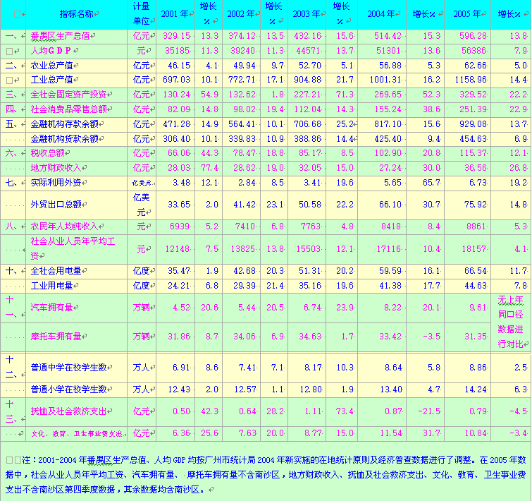 1.本公报所列数据是初步统计数,未注明的指标含原番禺的黄阁镇、横沥镇、万顷沙镇、南沙开发区和珠江管理区。