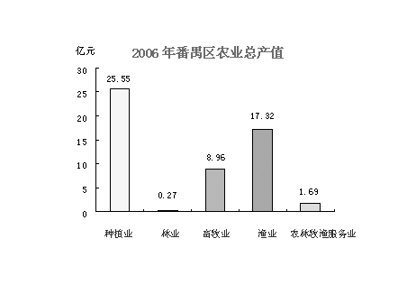 农业生产在结构调整中平稳发展。通过大力推进农业产业化、机械化、标准化和现代化,传统型农业逐步向现代都市型农业转变。2006年,彩票平台推荐 农业总产值53.78亿元,增长6.2%。其中,种植业产值25.55亿元,增长3.7%;畜牧业产值8.96亿元,下降0.8%;渔业产值17.32亿元,增长 11.3%。
