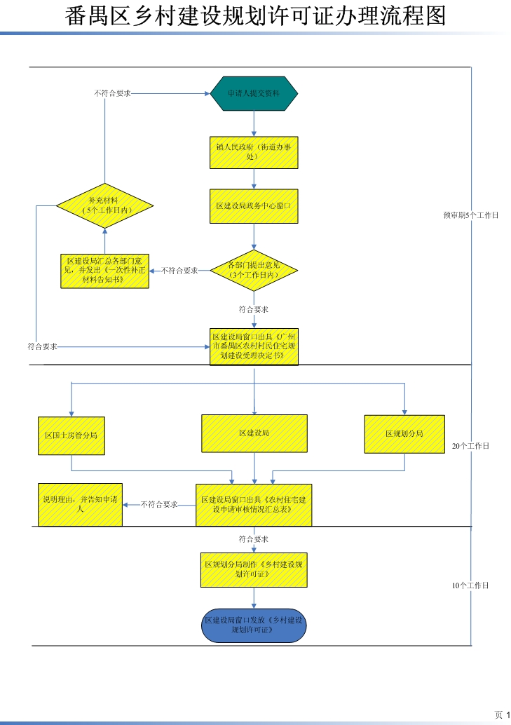 (九)区行政主管部门审批期限:农村村民住宅建设申请应自政务窗口受理申请之日起30个工作日内办结。其中,相关行政主管部门在20个工作日内依法作出审核决定;如各行政主管部门均审核通过,番禺规划分局在10个工作日内发放《乡村建设规划许可证》。相关行政主管部门在20个工作日内不能作出审核决定的,经本级人民政府负责人批准,可以延长15个工作日,并应将延长期限的理由通过区建设局政务中心窗口告知申请人。