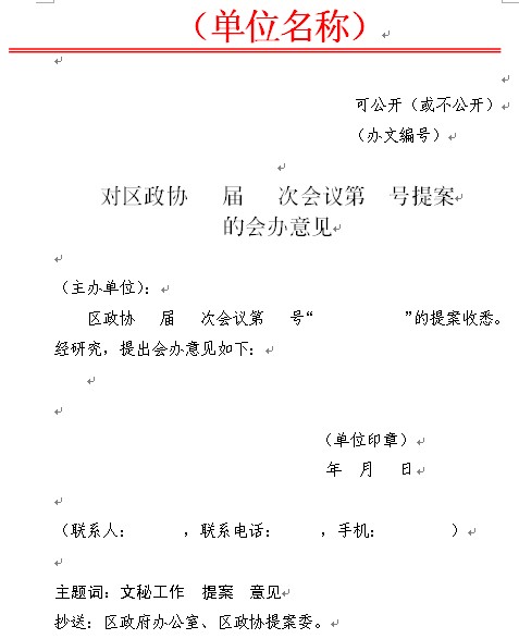 (一)由区政府办公室分送有关单位承办的全国、省、市建议、提案,承办单位应当在区政府办公室交办通知规定的期限内,将办复意见代拟稿报送区政府办公室,由区政府办公室在交办单位的规定期限内予以答复。