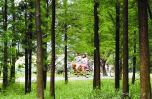 本《条例》第四十五条规定,在公共绿地和以景观效果为主的河涌附属绿地内,禁止下列损害绿化及其设施的行为:(一)丢弃废弃物,倾倒有毒有害物质,堆放、焚烧物料;(二)攀、折、钉、栓、刻划树木,损害树根、树干、树皮;(三)擅自采摘花果枝叶,践踏绿地;(四)以树承重,就树搭建;(五)损坏树木支架、栏杆、花基、供排水设施等;(六)建坟、采石取土;(七)其他损害绿化及其设施的行为。