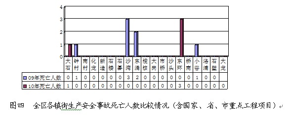 (2010年全区生产安全事故起数、死亡人数同比2009年情况分别见图三和图四)