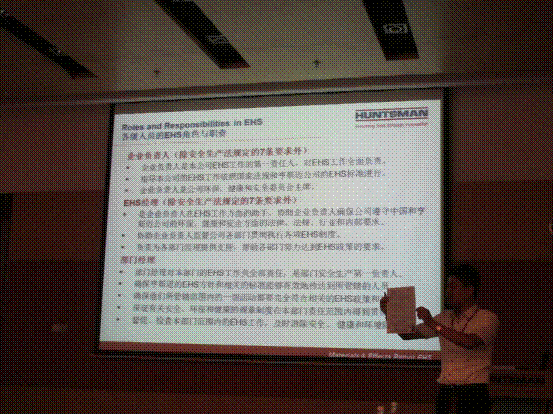 随后,亨斯迈纺织染化(中国)有限公司作为开展化工工程安全管理示范企业与其他三个重点危险化学品企业进行了管理经验分享交流,结合自身的管理做法、引用国内事故案例给参会人员上了一堂精彩的安全生产教育课。亨斯迈公司多次迎接国家、省、市的督查,得到了充分肯定,成绩的取得归结于企业安全生产管理委员会管理层重视安全生产,管理人员认真履行职责。