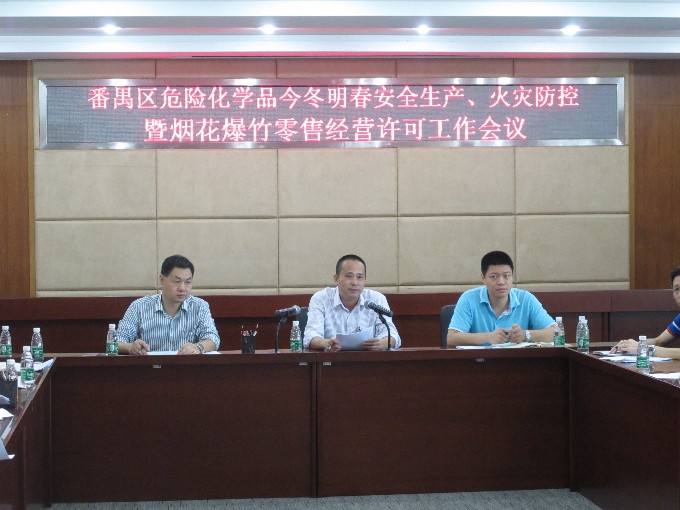 会议首先传达了《广州市危险化学品和烟花爆竹领域今冬明春安全生产、火灾防控方案》。要求各镇街严格按方案精神履行属地管理职责,区、镇、街联动开展危险化学品和烟花爆竹企业安全生产、消防安全检查,结合日常检查和各项专项治理,将危险化学品和烟花爆竹企业安全生产、消防安全责任制落实情况、安全设施和消防设施完好情况、隐患排查治理落实情况、安全事故应急处置预案制定及演练情况等纳入检查或专项治理内容,发现隐患,督促企业落实整改,推进企业安全生产主体责任的落实,保障企业安全生产和消防安全。强化重大活动、重大节日安全生产、消防安全工作。圣诞、元旦、春节、元宵节及全国、省市“两会”等重大活动和重要节日期间,要切实加强安全生产、消防安全工作,确保安全。