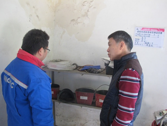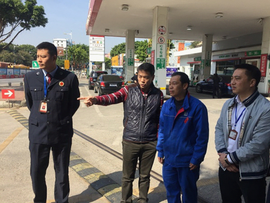 蒋万银局长首先来到东环街番环加油站,经检查,现场员工抽烟及为电动车充电的位置过近距离不足,员工未按要求穿反光背心,未及时收缴保管卸油车辆钥匙,卸油车停放位置未采取防碰撞措施,除静电设施设置不合理,灭火器材及工具有损坏等隐患,对此蒋万银局长现场对油站现场负责人给予严肃批评,责令针对存在隐患立即整改,狠抓落实,并于明天前将整改落实情况报我局。