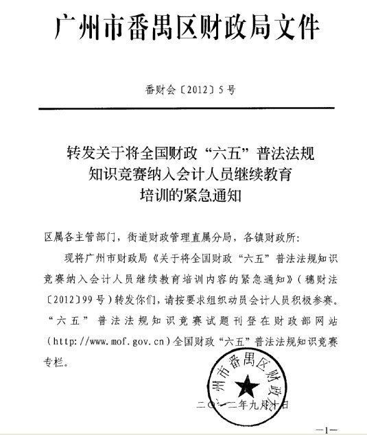 2012年全国财政“六五”普法法规知识竞赛试题参考资料