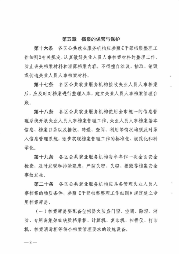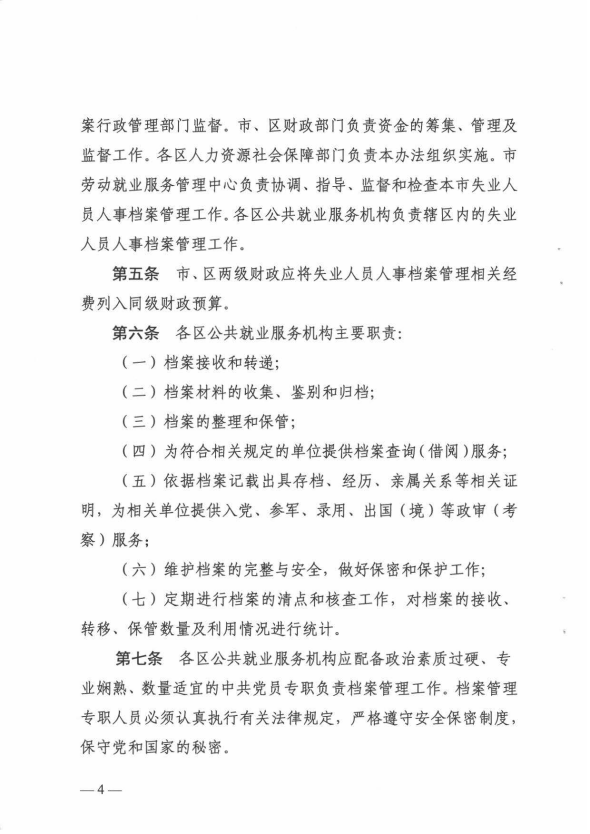 一、区就业服务中心负责辖区内失业人员的人事档案管理工作,镇(街)劳动和社会保障中心负责告知并指引失业人员,在办理失业登记后可将人事档案委托区就业服务中心免费保管。
