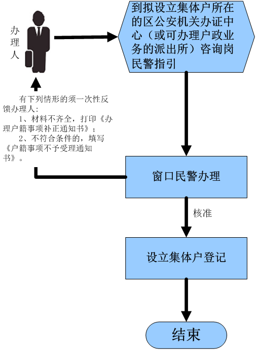 1.凡符合集体户口设立条件的,由专职集体户口管理人员,向拟设立单位集体所在地址的公安机关咨询窗口指引提供申请,经核准后予以办理。