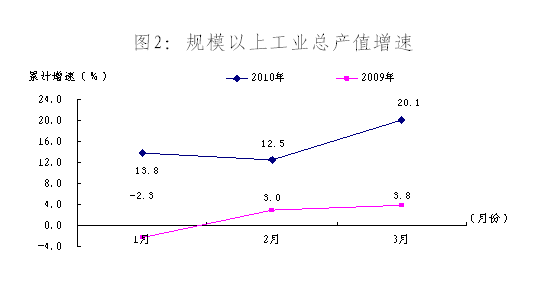 随着外贸出口的逐步回暖,工业生产进入了回升期,大部份企业回归正常生产经营轨道。一季度全区实现工业总产值367.60亿元,比上年同期增长19.5%。规模以上工业总产值321.58亿元,比上年同期增长20.1%。与去年同期比较,1-3月各月累计规上工业总产值增长率同比分别提高16.1、9.5和16.3个百分点。表明工业生产形势明显好转。