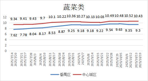 根据我区23家农贸市场及商超监测数据,本期(10月13日至10月19日)各类“菜篮子”商品供应充足,所监测的9大类重要民生商品价格1涨3平5降。其中奶制品价格稳中微涨,畜禽肉、水产品、烹调油(食用油)价格平稳,蔬菜、蛋类、谷薯类及其制品、坚果豆类及其制品、瓜果价格微降,结合当前天气和市场供需情况,近期商品价格以小幅波动为主。