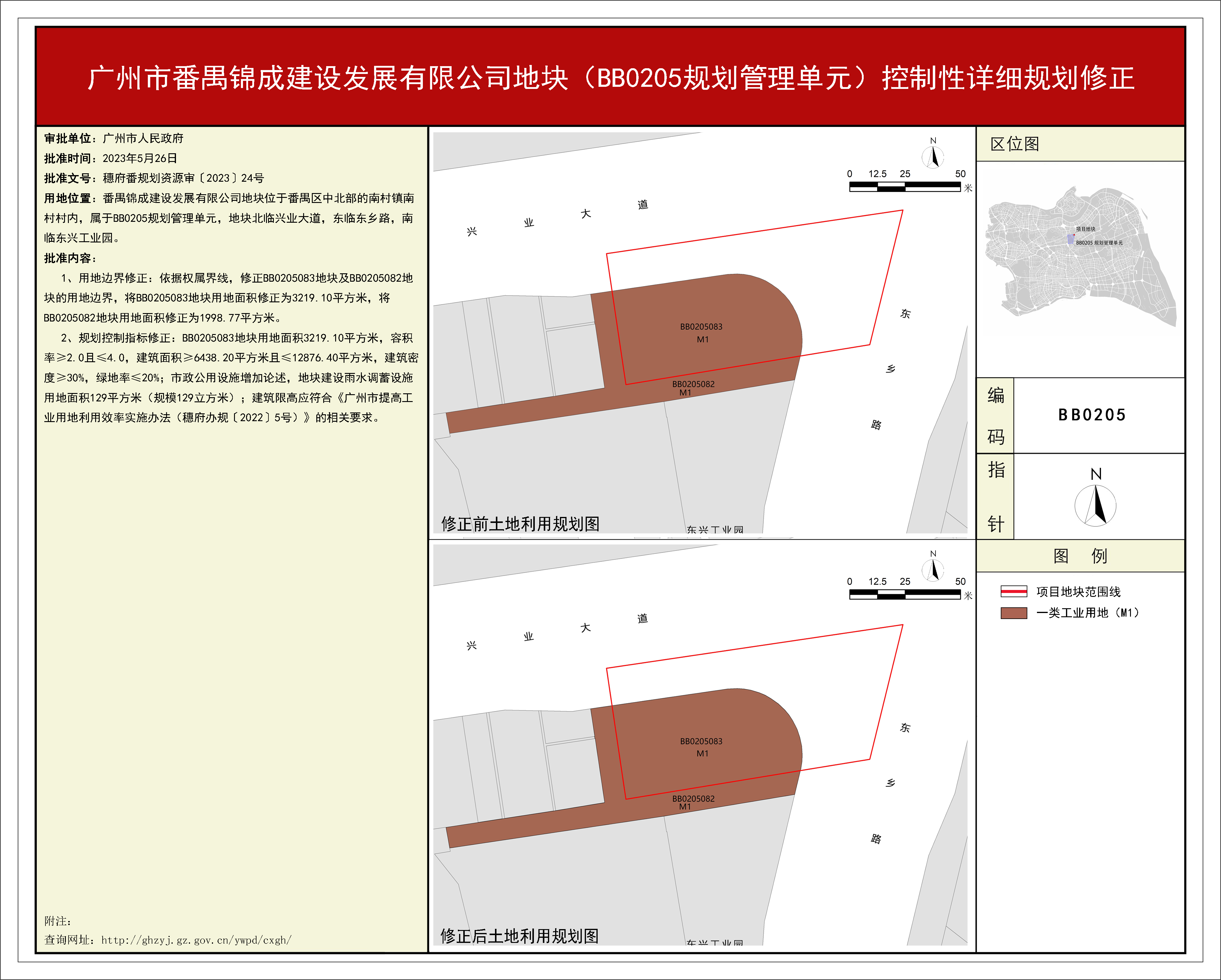 根据《广东省城市控制性详细规划管理条例》、《广州市人民政府关于将一批市级行政职权事项继续委托区实施的决定》(穗府[2019]8号)、《广州市人民政府关于收回一批市级行政权力事项的决定》(广州市人民政府令第188号),《广州市番禺锦成建设发展有限公司地块(BB0205规划管理单元)控制性详细规划修正》规划成果已完成规划技术审查、批前公示等程序,并经彩票平台推荐 土地和规划领导小组会议审议通过后获广州市人民政府批准,自批准之日(2023年5月26日)起生效。